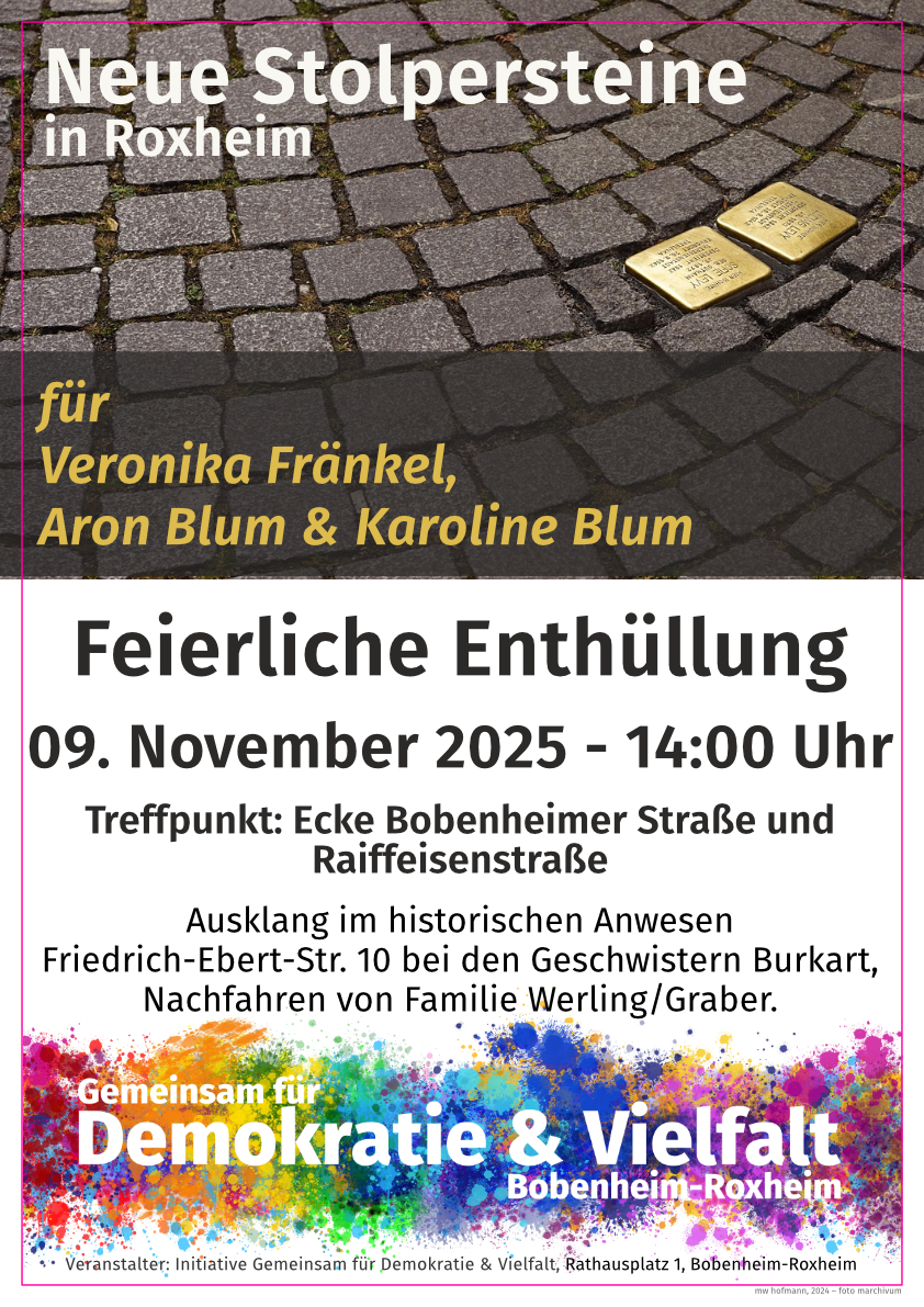 09.11.2025 - Gemeinsam für Demokratie und Vielfalt Bobenheim-Roxheim lädt zur Stoperstein-Einweihung ein.