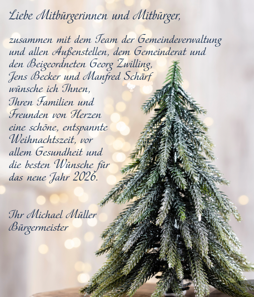 Weihnachtswünsche der Gemeindeverwaltung verbunden mit den besten Wünschen für das neue Jahr 2026.