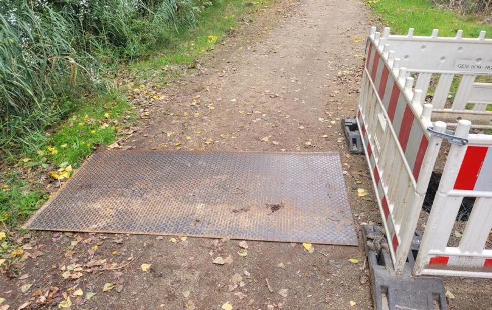 Altrheinrundweg graben Biber immer wieder Gänge. Dadurch entstehen Hohlräume