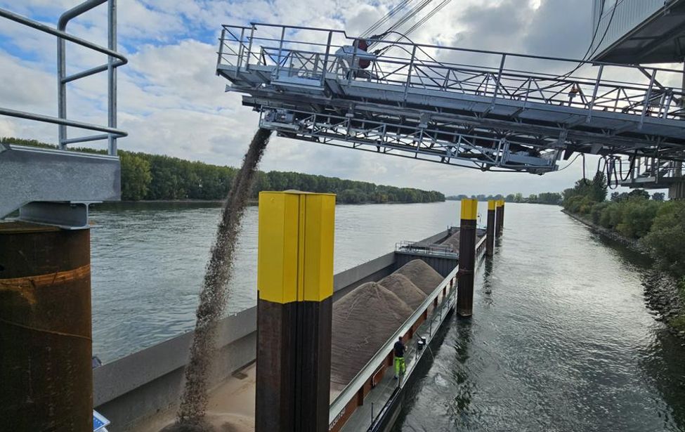 im Werk Bonnau abgebauten Sandmengen direkt auf Schiffe verladen.